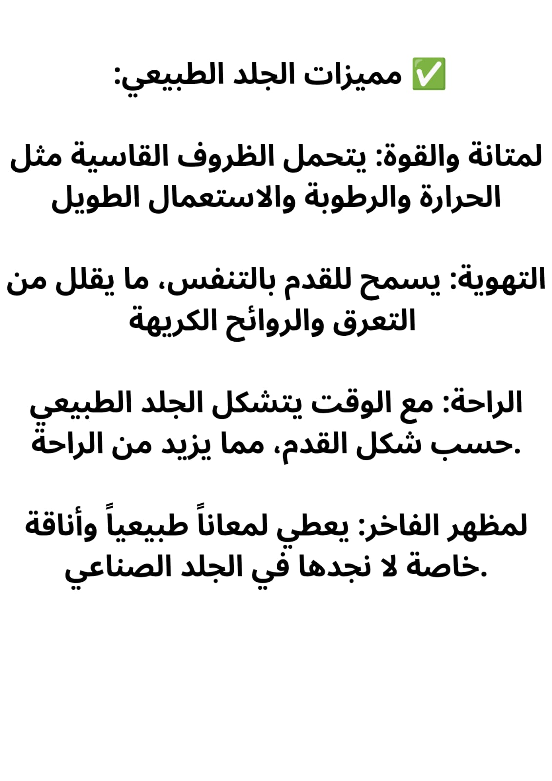 المنتج مصنوع من جلد طبيعي 100%، وهذا النوع من الجلد يُعتبر من أفضل الخامات وأكثرها جودة مقارنة بالجلد الصناعي